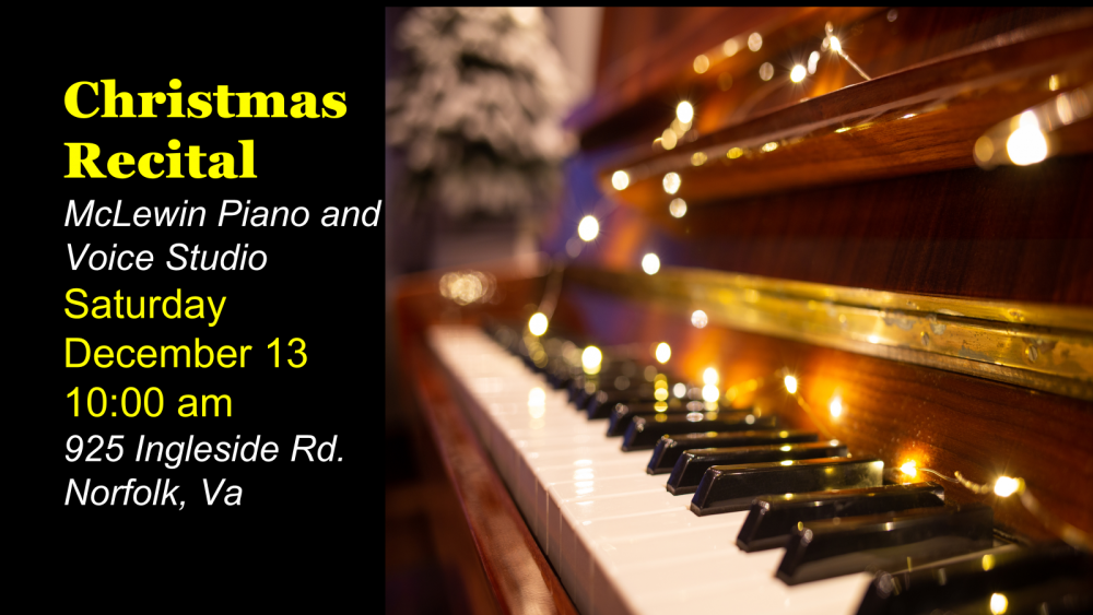 Join us for a lovely hour of Christmas music by the students of Mrs. Margaret McLewin, followed by refreshments!